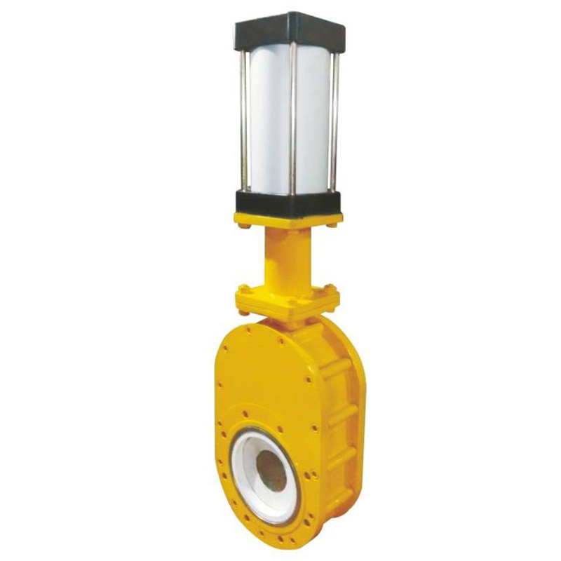 本閥適用于發電廠千灰系統、倉泵出料輸送,也可適用于礦山造紙、化工等個類有磨損的干粉塵、高硬度的顆粒例如(灰渣水)等介質,或有軟顆粒但又有腐蝕性的介質的管道上作啟閉之用。